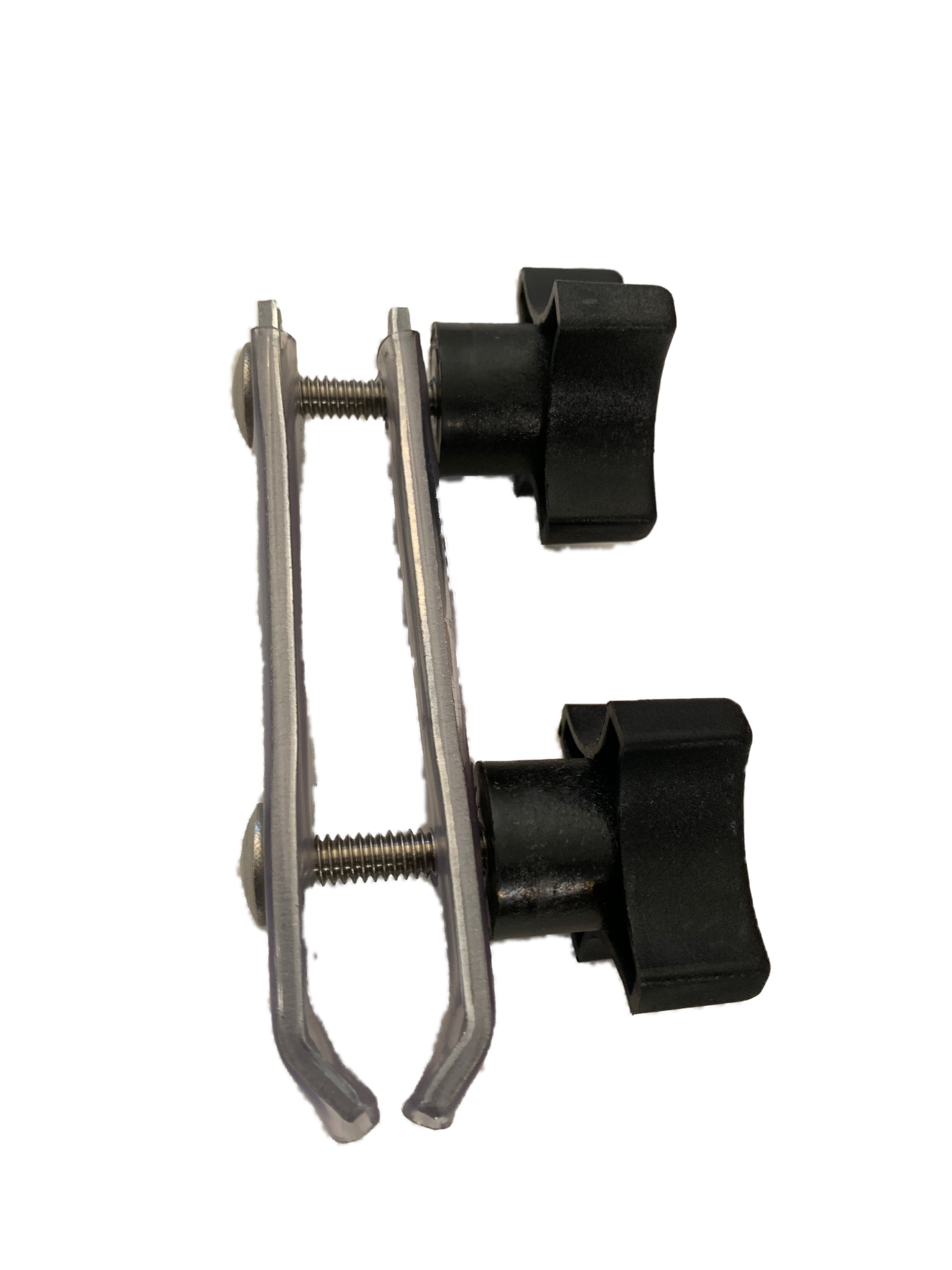 After a call back from Bike Tow Leash, I found that the Leash arm itself has a slot hole on one end, so by cutting the blue plastic just a bit, I can easily attach the extra clamp with the Leash arm. Works great. Great service. (old and incorrect: The extra clamps I bought to move my Bike Tow Leash to another bike are not sized correctly. The holes are closer together than on the Leash. )
