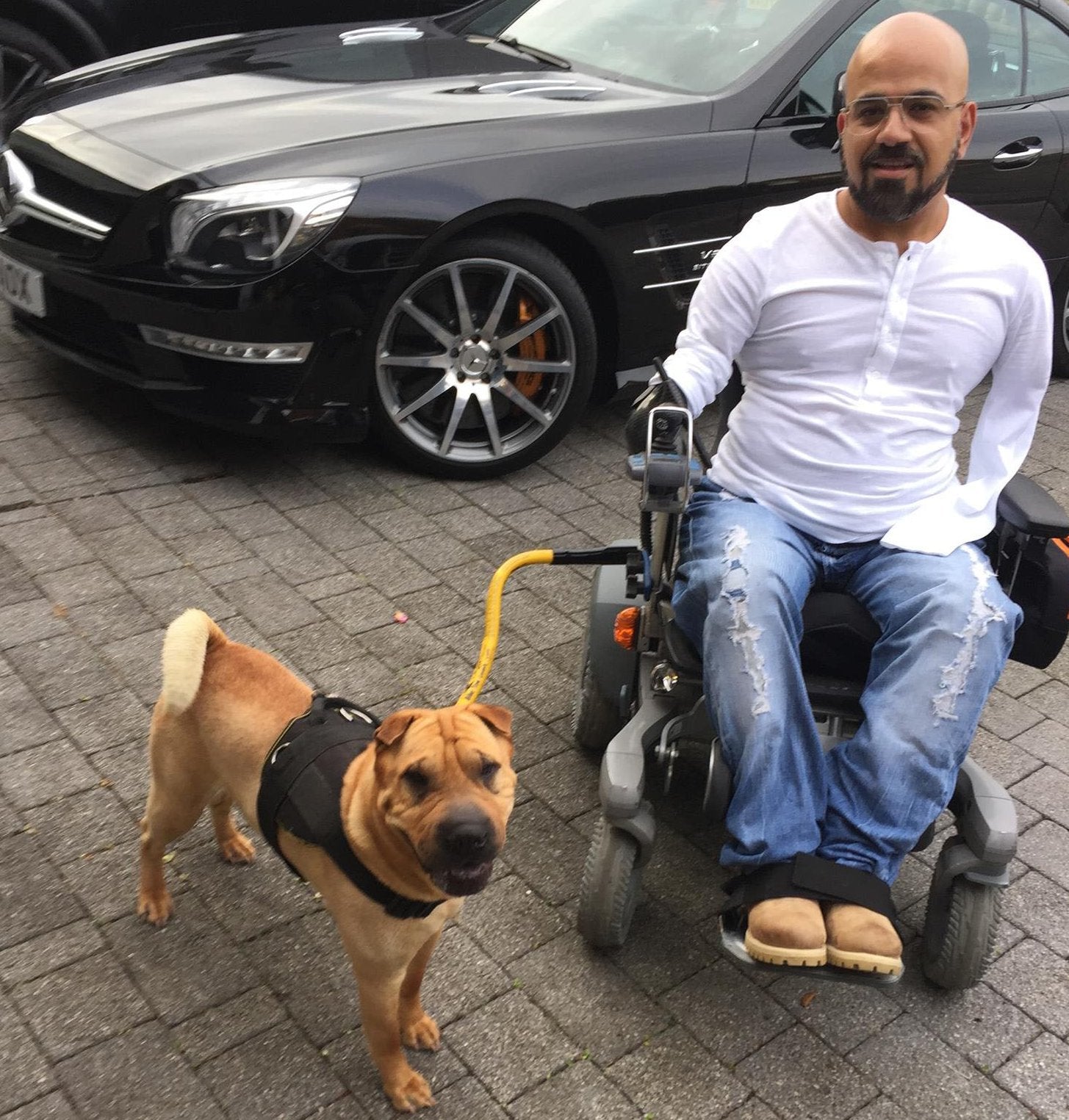 It’s wonderful to know that people in wheelchairs have the safety and joy of being able to have fun times with their pets on walks.