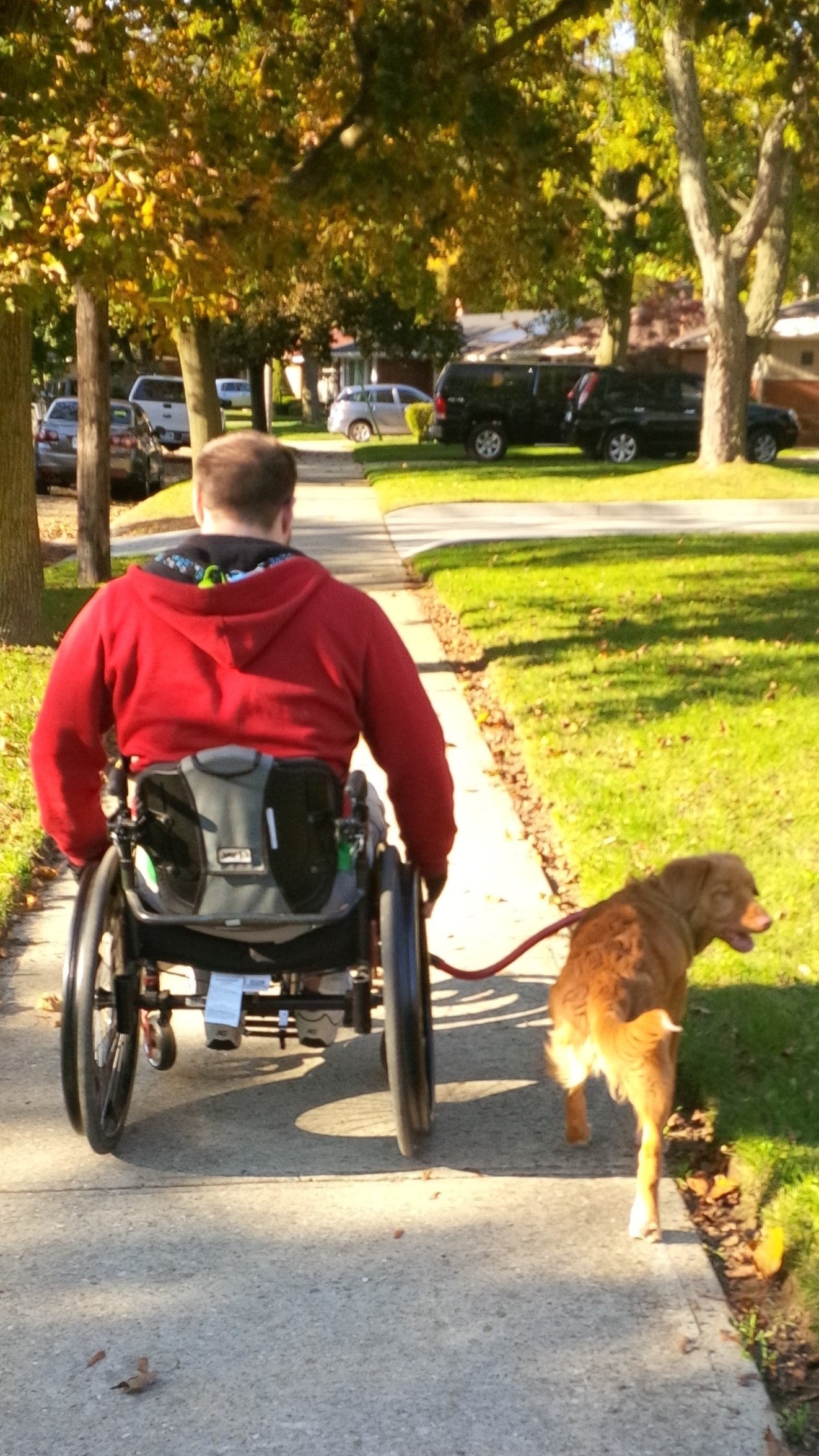 This product is a game changer for wheelchair users and their dog makes the daily walk safer