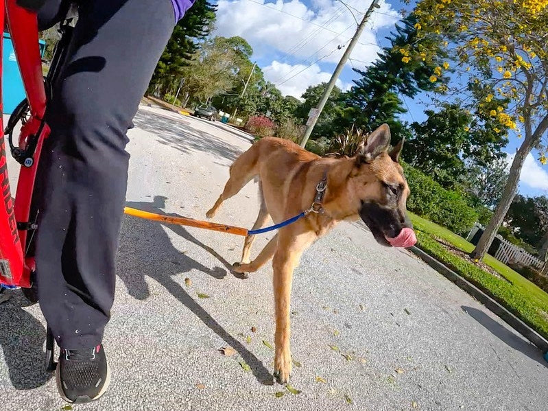 Much better than leash under seat or attachments with the pipe to the side. The pipe always moved forward so leg was pushing against it on the down stride. Now my dog can't go ahead of the front tire or pull me off to the side. He loves running along side. Customer service was also great! We purchased a new bike and was very helpful getting the right attachment and return.
