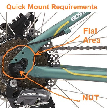 A használathoz legalább 16 mm-es (5/8 hüvelyk) sík vagy nyitott területre van szükség a hátsó tengely körül. 3/8 vagy 9 mm átmérőjű, mindkét oldalon hatlapú anyákkal ellátott tömör tengelyek esetén 6 mm-es (1/4 hüvelyk) szabad tengelyhosszra van szükség.